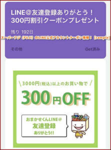 LINE友達特典(クーポン情報)が確認できます。